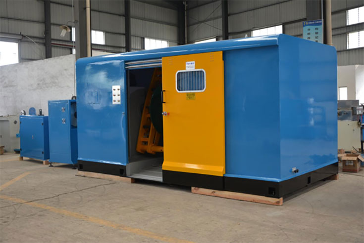 4、成缆主机护罩全封闭式,内部采用多孔网板,内采用镶嵌消音棉,有效降低了设备运行时产生的噪音;