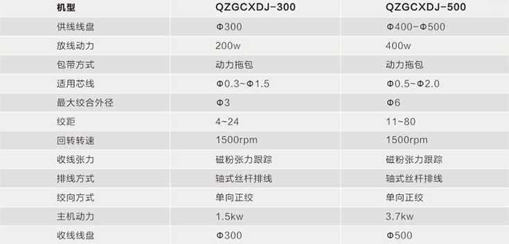 设备组成:三头动力放线,双头动力包带装置,旋臂式挂齿单绞机。